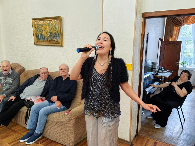 Пенсионеры встретили артистов тепло. Они подпевали, аплодировали и выражали благодарность бурными овациями.