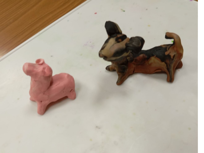 В учреждении проведено занятие по лепке с ребёнком с ограниченными возможностями здоровья. Инструктор по труду показала как можно лепить из целого куска пластилина (без отрыва) животных, раскатав нужную форму, постепенно вытягивая из него тело, голову, ушки, лапки, хвост. Такой необычный способ помогает развить пластичность пальцев, улучшить когнитивные способности ребенка.