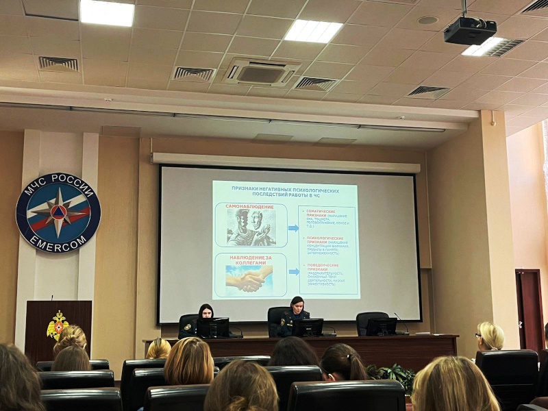 Психолог учреждения приняла участие во встрече проходящей на базе ГУ МЧС России по Нижегородской области. Темой обсуждения была профилактика негативных психологических последствий у психологов РС ЧС после участия в мероприятиях по оказанию экстренной психологической помощи.
