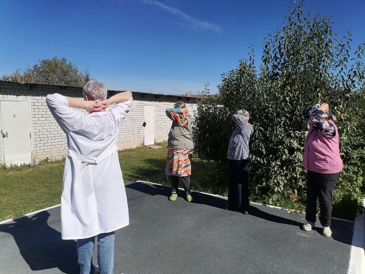 Физические упражнения очень естественны в молодости, но к 40-50 годам они совсем исчезают из нашей жизни. Пожилые люди ощущают отсутствие бодрости, тонуса, их движения становятся медленными, неуклюжими. Старость здесь ни при чем. Отсутствие движений ослабляет наши мышцы, связки, суставы. Без зарядки наша нервная система слабеет, ей становится сложно управлять нашими движениями. У пожилых людей появляется сутулость, шаркающая походка.В отделении «Специализированный жилой дом для граждан пожилого возраста и инвалидов»ГБУ «КЦСОН Краснобаковского муниципального округа» регулярно проходят занятия гимнастикой на свежем воздухе «На зарядку становись»