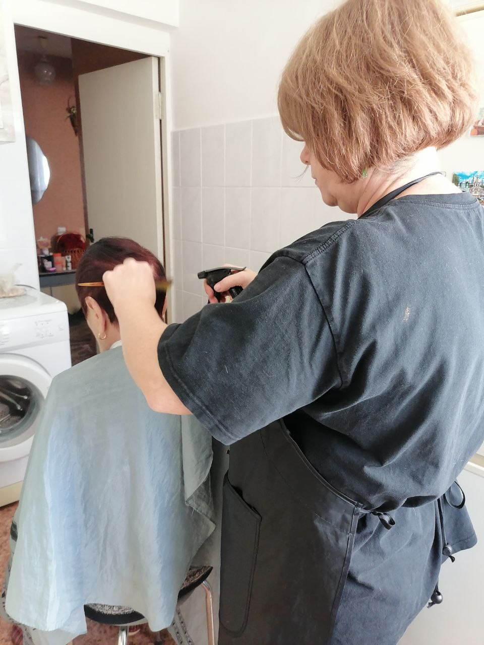 У парикмахера есть и особенные клиенты — пожилые люди, которые не могут передвигаться самостоятельно. Делать стрижки в таком случае непросто. Парикмахеру приходится проявлять все свое мастерство и изобретательность, чтобы привести в порядок волосы такого человека. Все жители остались довольны оказанной услугой!