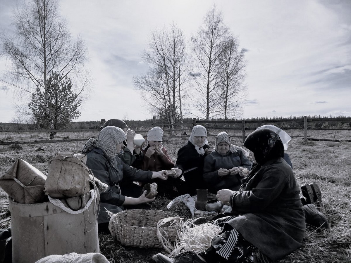 Небольшой привал. Они опускаются прямо на землю — промёрзшую, влажную, как и их уставшие души. Пять минут тишины, глоток воды, взгляд в небо — и снова в работу. Потому что где-то там, на фронте, их мужья и сыновья. Потому что иначе нельзя. Потому что на их плечах — хлеб, надежда и жизнь.